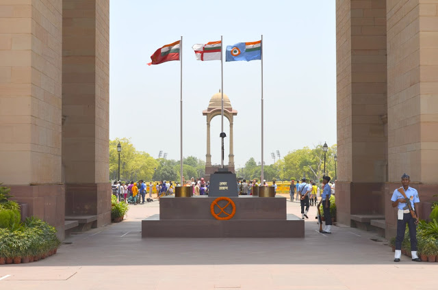 Flags of three section of Indian Forces at Amar Jawan Jyoti