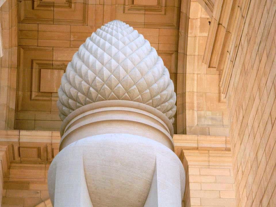 The arch stands 42m high and is made up of Red Bharatpur Stone. The foundation stone of India Gate was laid by Royal Highness, the Duke of Connaught in 1921. The arch commemorates the 70000 Indian Soldiers who had given the sacrifice of their lives in the First World War for British Army. The memorial bears more than 13500 names of British and Indian Army officers killed in North-Western Frontier in the Afghan war in 1919. After laying the foundation stone of the War memorial in 1921, the rail-line was shifted to run along the Yamuna River and the New Delhi Railway Station was opened in 1926. The arch is having a large stone with pine cones on both sides. As per Roman mythology, these pines are the symbols of death and regeneration. The cornice is inscribed with the Imperial suns. The dates MCMXIV (1914 left) and MCMXIX (1919 right) are inscribed on both sides of the arch. The shallow domed bowl at the top is intended to be filled with burning oil on special occasions which is rarely performed nowadays.